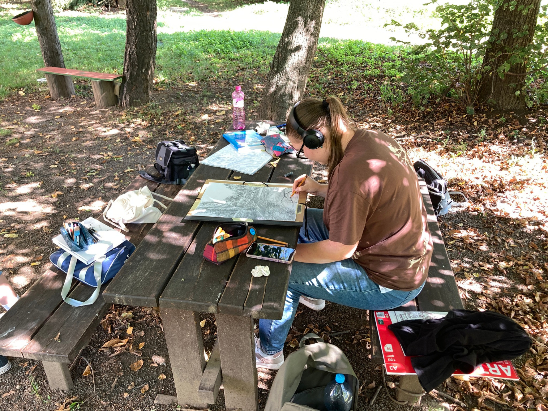 V dňoch 18. - 22. septembra 20223 sa konalo výtvarné sústredenie pre študentov druhého ročníka. Žiaci sa výtvarne realizovali v plenéri, učili sa kresliť v exteriéri a zúčastňovali sa exkurzií a workshopov. Vzniklo množstvo krásnych prác a dúfame, že zážitky z krajinárskeho kurzu ostanú žiakom dlho v pamäti